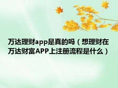 导读想必现在有很多小伙伴对于想理财,在万达财富APP上注册流程是什么方面的知识都比较想要了解,那么今天小好小编就为大家收集了一些关于想理...