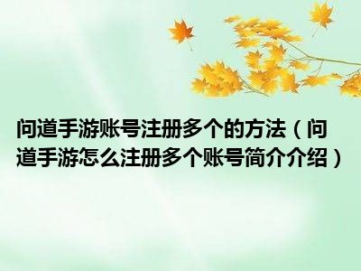 导读对于问道手游怎么注册多个账号这个问题感兴趣的朋友应该很多,这个也是目前大家比较关注的问题,那么下面小好小编就收集了一些问道手游怎么...