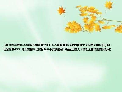 LOL玩家花费4000购买龙瞎账号仅有160个皮肤登录CF后直言赚大了你怎么看介绍(LOL玩家花费4000购买龙瞎账号仅有160个皮肤登录CF后直言赚大了你怎么看详细情况如何)