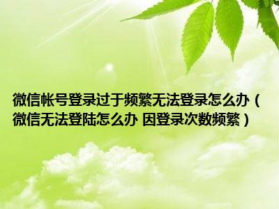 今天小编来给大家分享一些关于微信无法登陆怎么办 因登录次数频繁方面的知识吧,希望大家会喜欢哦