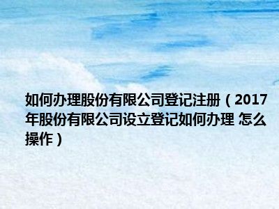 今天小编来给大家分享一些关于2017年股份有限公司设立登记如何办理 怎么操作方面的知识吧,希望大家会喜欢哦