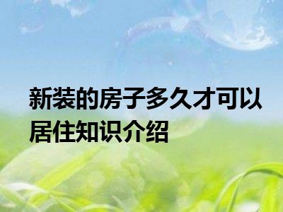 目前关于大家提出的新装的房子多久才可以居住这个问题,大家都希望能够得到一个答案,那么小编今天就去收集了一些新装的房子多久才可以居住相关的内容来分享给大家,如果大家感兴趣的话可以接着往下看。