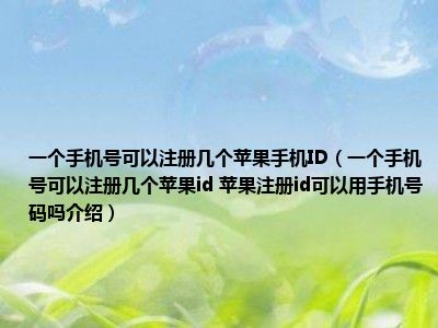 导读 想必现在有很多小伙伴对于手机方面的知识都比较想要了解,那么今天小好小编就为大家收集了一些关于一个手机号可以注册几个苹果id 苹果注...