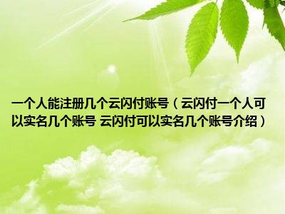 导读 想必现在有很多小伙伴对于手机方面的知识都比较想要了解,那么今天小好小编就为大家收集了一些关于云闪付一个人可以实名几个账号 云闪付...