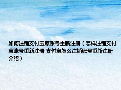 - 如何注销支付宝原账号重新注册(怎样注销支付宝账号重新注册 支付宝怎么注销账号重新注册介绍)