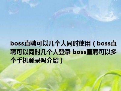导读 想必现在有很多小伙伴对于手机方面的知识都比较想要了解,那么今天小好小编就为大家收集了一些关于boss直聘可以同时几个人登录 boss直聘...