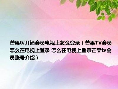 导读 想必现在有很多小伙伴对于手机方面的知识都比较想要了解,那么今天小好小编就为大家收集了一些关于芒果TV会员怎么在电视上登录 怎么在电...