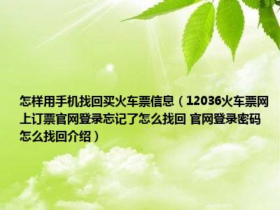 - 怎样用手机找回买火车票信息(12036火车票网上订票官网登录忘记了怎么找回 官网登录密码怎么找回介绍)