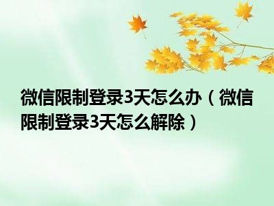 导读1、微信限制登录3天怎么解除?2、这是因为微信在登录时检测到账号被盗的风险。可以用常用设备登录后修改微信密码,然后在新手机上尝试登录...