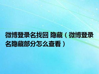 导读1、微博登录名隐藏部分怎么查看?2、微博登录名的隐藏部分无法直接查看。登录名是注册时使用的电子邮件或手机号码。建议仔细考虑一下。如果...