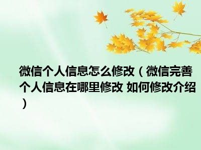导读 想必现在有很多小伙伴对于手机方面的知识都比较想要了解,那么今天小好小编就为大家收集了一些关于微信完善个人信息在哪里修改 如何修改...