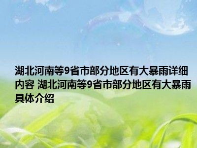 导读想必大家现在对于湖北河南等9省市部分地区有大暴雨方面的信息都是比较想了解的吧,那么针对于湖北河南等9省市部分地区有大暴雨方面的信息