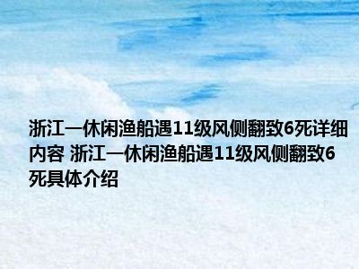 导读想必大家现在对于浙江一休闲渔船遇11级风侧翻致6死方面的信息都是比较想了解的吧,那么针对于浙江一休闲渔船遇11级风侧翻致6死方面的信息