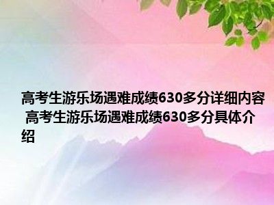 导读想必大家现在对于高考生游乐场遇难:成绩630多分方面的信息都是比较想了解的吧,那么针对于高考生游乐场遇难:成绩630多分方面的信息,小