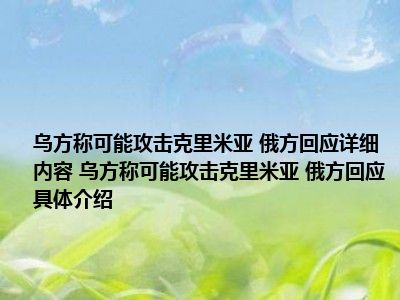 想必大家现在对于乌方称可能攻击克里米亚 俄方回应方面的信息都是比较想了解的吧,那么针对于乌方称可能攻击克里米亚 俄方回应方面的信息,小西自然是收集了一些相关方面的信息,那么如果您感兴趣的话,可以看下下面小西为大家收集到与乌方称可能攻击克里米亚 俄方回应相关的信息吧。