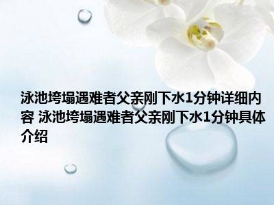 想必大家现在对于泳池垮塌遇难者父亲:刚下水1分钟方面的信息都是比较想了解的吧,那么针对于泳池垮塌遇难者父亲:刚下水1分钟方面的信息,小西自然是收集了一些相关方面的信息,那么如果您感兴趣的话,可以看下下面小西为大家收集到与泳池垮塌遇难者父亲:刚下水1分钟相关的信息吧。