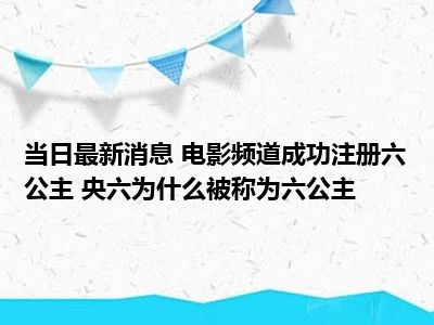 电影频道成功注册“六公主” 央六为什么被称为六公主现在是大家比较关注的,因为目前电影频道成功注册“六公主” 央六为什么被称为六公主的热度是相对比较高的,那么既然大家对此都比较感兴趣,小S也是特地到网上去查找了一些相关的信息,下面就由小S来把这些信息来分享给大家一起查阅吧。