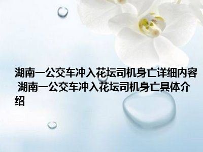 导读想必大家现在对于湖南一公交车冲入花坛司机身亡方面的信息都是比较想了解的吧,那么针对于湖南一公交车冲入花坛司机身亡方面的信息,小西