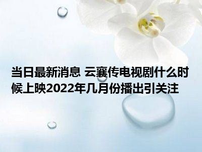导读云襄传电视剧什么时候上映2022年几月份播出引关注现在是大家比较关注的,因为目前云襄传电视剧什么时候上映2022年几月份播出引关注的热度
