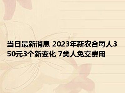 导读 2023年新农合每人350元3个新变化 7类人免交费用现在是大家比较关注的,因为目前2023年新农合每人350元3个新变化 7类人免交费用的热度是