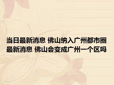 导读 佛山纳入广州都市圈最新消息 佛山会变成广州一个区吗现在是大家比较关注的,因为目前佛山纳入广州都市圈最新消息 佛山会变成广州一个区