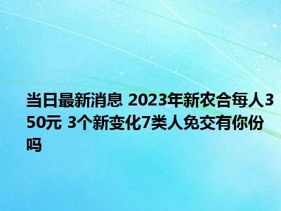 导读 2023年新农合每人350元 3个新变化7类人免交有你份吗现在是大家比较关注的,因为目前2023年新农合每人350元 3个新变化7类人免交有你份吗
