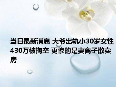 大爷出轨小30岁女性430万被掏空 更惨的是妻离子散卖房现在是大家比较关注的,因为目前大爷出轨小30岁女性430万被掏空 更惨的是妻离子散卖房的热度是相对比较高的,那么既然大家对此都比较感兴趣,小S也是特地到网上去查找了一些相关的信息,下面就由小S来把这些信息来分享给大家一起查阅吧。
