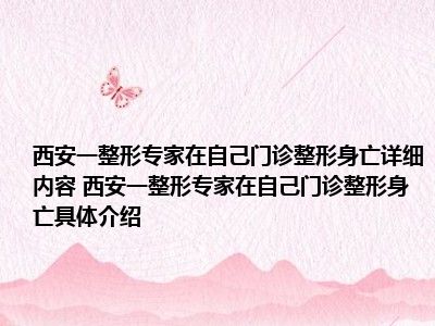 导读想必大家现在对于西安一整形专家在自己门诊整形身亡方面的信息都是比较想了解的吧,那么针对于西安一整形专家在自己门诊整形身亡方面的信