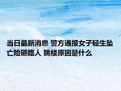 导读 警方通报女子轻生坠亡险砸路人 跳楼原因是什么现在是大家比较关注的,因为目前警方通报女子轻生坠亡险砸路人 跳楼原因是什么的热度是相