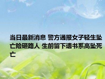 导读 警方通报女子轻生坠亡险砸路人 生前留下遗书系高坠死亡现在是大家比较关注的,因为目前警方通报女子轻生坠亡险砸路人 生前留下遗书系高
