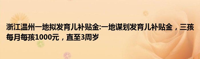 据浙江省温州市龙湾区政府网站8月8日消息,温州市龙湾区卫生健康局7月6日答复区政协六届一次会议张冬梅委员《关于完善适龄青年生育政策配套措施的提案》称,龙湾区谋划二孩每月每孩发放500元育儿补贴金,三孩每月每孩发放1000元育儿补贴金,直至3周岁。