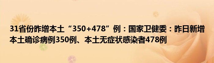 31个省(自治区、直辖市)和新疆生产建设兵团报告新增无症状感染者540例,其中境外输入62例,本土478例(海南171例,新疆146例,浙江67例,广西25例,西藏21例,广东13例,兵团7例,河南5例,湖北4例,内蒙古3例,吉林3例,福建3例,重庆2例,四川2例,甘肃2例,天津1例,河北1例,安徽1例,江西1例)。