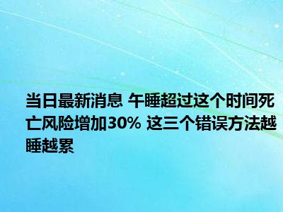导读 午睡超过这个时间死亡风险增加30% 这三个错误方法越睡越累现在是大家比较关注的,因为目前午睡超过这个时间死亡风险增加30% 这三个错误