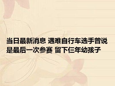 导读 遇难自行车选手曾说是最后一次参赛 留下仨年幼孩子现在是大家比较关注的,因为目前遇难自行车选手曾说是最后一次参赛 留下仨年幼孩子的