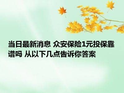 众安保险1元投保靠谱吗 从以下几点告诉你答案现在是大家比较关注的,因为目前众安保险1元投保靠谱吗 从以下几点告诉你答案的热度是相对比较高的,那么既然大家对此都比较感兴趣,小S也是特地到网上去查找了一些相关的信息,下面就由小S来把这些信息来分享给大家一起查阅吧。