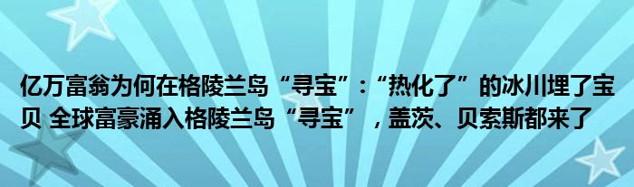 然而,在这场全球瞩目的气候危机背后,一群全球最富有的人却发现了其中的“商机”。据报道,包括杰夫·贝索斯、迈克尔·布隆伯格和比尔·盖茨等一众全球富豪正竞相在格陵兰岛西海岸开展一场大规模的“寻宝活动”。他们认为,在格陵兰迪斯科岛和努苏阿克半岛的丘陵和山谷之下,有足够为数亿辆电动汽车提供动力的珍贵矿产。