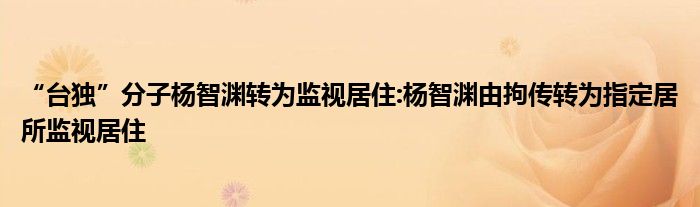 日前,总台央视记者从国家安全机关了解到,8月4日,浙江省温州市国家安全局依法对涉嫌分裂国家犯罪、煽动分裂国家犯罪的台湾地区犯罪嫌疑人杨智渊变更刑事强制措施,由拘传转为指定居所监视居住。8月5日,已依法通知其家属。