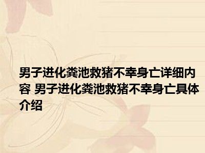 想必大家现在对于男子进化粪池救猪不幸身亡方面的信息都是比较想了解的吧,那么针对于男子进化粪池救猪不幸身亡方面的信息,小西自然是收集了一些相关方面的信息,那么如果您感兴趣的话,可以看下下面小西为大家收集到与男子进化粪池救猪不幸身亡相关的信息吧。