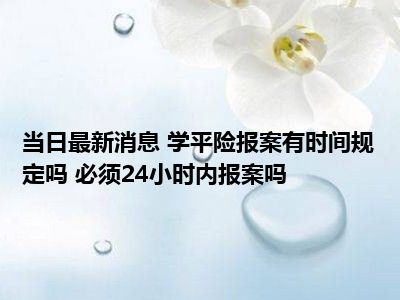 学平险报案有时间规定吗 必须24小时内报案吗现在是大家比较关注的,因为目前学平险报案有时间规定吗 必须24小时内报案吗的热度是相对比较高的,那么既然大家对此都比较感兴趣,小S也是特地到网上去查找了一些相关的信息,下面就由小S来把这些信息来分享给大家一起查阅吧。