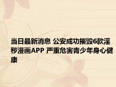 公安成功摧毁6款淫秽漫画APP 严重危害青少年身心健康现在是大家比较关注的,因为目前公安成功摧毁6款淫秽漫画APP 严重危害青少年身心健康的热度是相对比较高的,那么既然大家对此都比较感兴趣,小S也是特地到网上去查找了一些相关的信息,下面就由小S来把这些信息来分享给大家一起查阅吧。