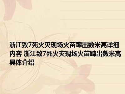 想必大家现在对于浙江致7死火灾现场:火苗蹿出数米高方面的信息都是比较想了解的吧,那么针对于浙江致7死火灾现场:火苗蹿出数米高方面的信息,小西自然是收集了一些相关方面的信息,那么如果您感兴趣的话,可以看下下面小西为大家收集到与浙江致7死火灾现场:火苗蹿出数米高相关的信息吧。