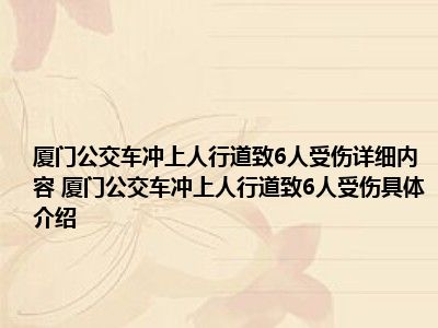 导读想必大家现在对于厦门公交车冲上人行道致6人受伤方面的信息都是比较想了解的吧,那么针对于厦门公交车冲上人行道致6人受伤方面的信息,小