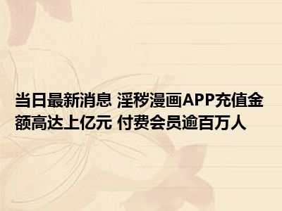 导读 淫秽漫画APP充值金额高达上亿元 付费会员逾百万人现在是大家比较关注的,因为目前淫秽漫画APP充值金额高达上亿元 付费会员逾百万人的热