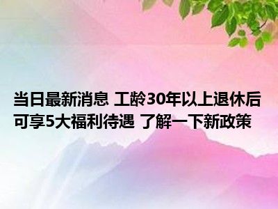 导读 工龄30年以上退休后可享5大福利待遇 了解一下新政策!现在是大家比较关注的,因为目前工龄30年以上退休后可享5大福利待遇 了解一下新政