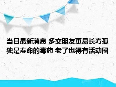 导读 多交朋友更易长寿孤独是寿命的“毒药” 老了也得有活动圈现在是大家比较关注的,因为目前多交朋友更易长寿孤独是寿命的“毒药” 老了也