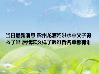 导读 彭州龙漕沟洪水中父子得救了吗 后续怎么样了遇难者名单都有谁现在是大家比较关注的,因为目前彭州龙漕沟洪水中父子得救了吗 后续怎么样