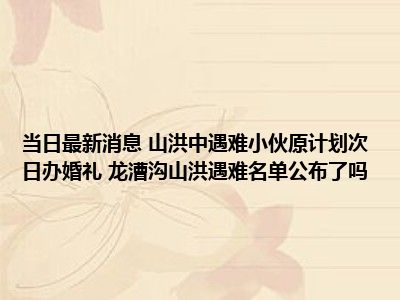 导读 山洪中遇难小伙原计划次日办婚礼 龙漕沟山洪遇难名单公布了吗现在是大家比较关注的,因为目前山洪中遇难小伙原计划次日办婚礼 龙漕沟山