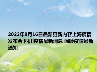 今天大家应该都在关注上海疫情发布会 四川疫情最新消息 温岭疫情最新通知,那么很多小伙伴在关注的同时自然是想要了解到上海疫情发布会 四川疫情最新消息 温岭疫情最新通知的具体来龙去脉了,新广小编今天也是特地在网络上搜集了一些相关的信息内容来分享给大家,感兴趣的小伙伴可以好好看下。