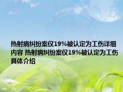1、想必大家现在对于热射病纠纷案仅19%被认定为工伤方面的信息都是比较想了解的吧,那么针对于热射病纠纷案仅19%被认定为工伤方面的信息,小西自然是收集了一些相关方面的信息,那么如果您感兴趣的话,可以看下下面小西为大家收集到与热射病纠纷案仅19%被认定为工伤相关的信息吧。