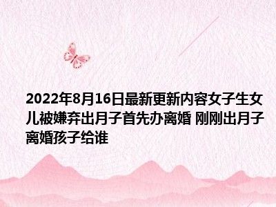今天大家应该都在关注女子生女儿被嫌弃出月子首先办离婚 刚刚出月子离婚孩子给谁,那么很多小伙伴在关注的同时自然是想要了解到女子生女儿被嫌弃出月子首先办离婚 刚刚出月子离婚孩子给谁的具体来龙去脉了,新广小编今天也是特地在网络上搜集了一些相关的信息内容来分享给大家,感兴趣的小伙伴可以好好看下。